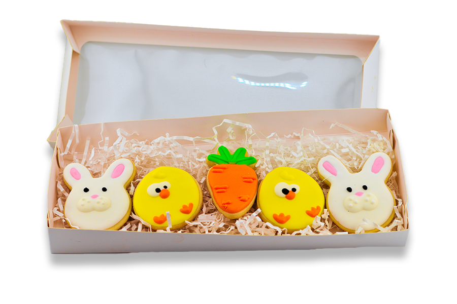 Celebrate Easter with our handcrafted cookie boxes, made fresh in-house and decorated with seasonal designs. Each box comes in the same signature packaging, with two options to choose from: • Small Cookies (5) — a variety of smaller, festive designs • Large Cookies (3) — fewer, larger cookies with more detailed decoration Perfect for gifting, sharing, or enjoying a holiday treat.